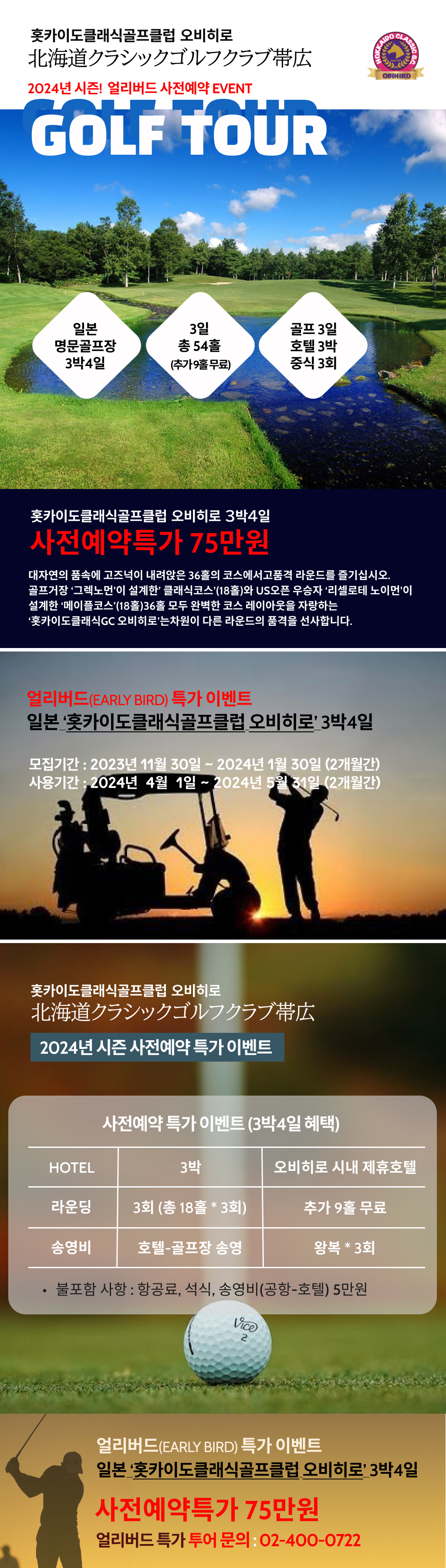 2024년 시즌 얼리버드 (Early Bird) 골프투어상품 출시