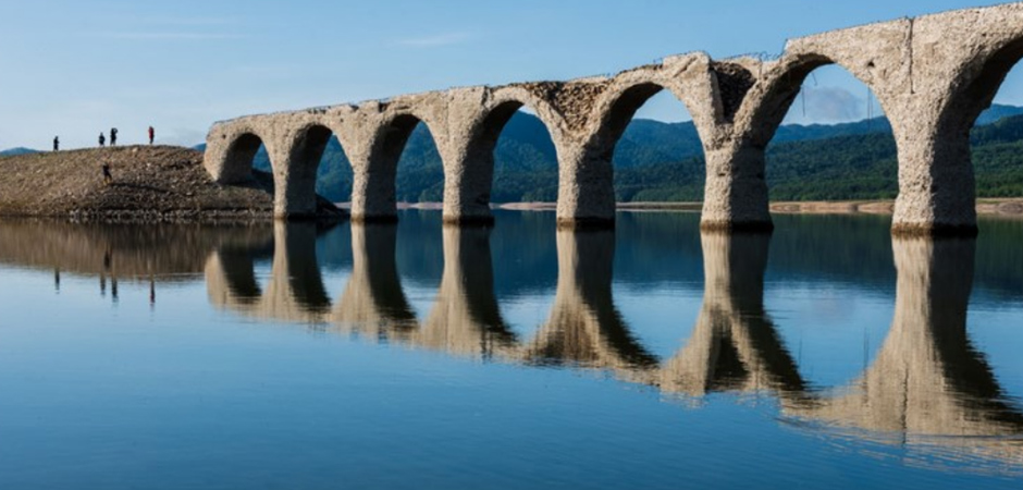 | 타우슈베츠 다리는 풍화가 진행되고 있으며 호수의 수위가 내려갈 때가 아니면 볼 수 없는 「환상의 다리」 |